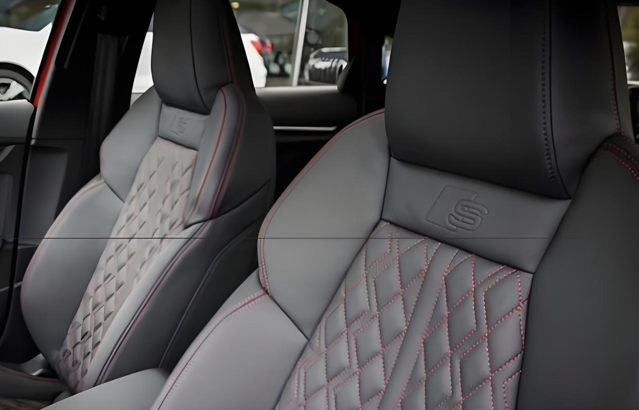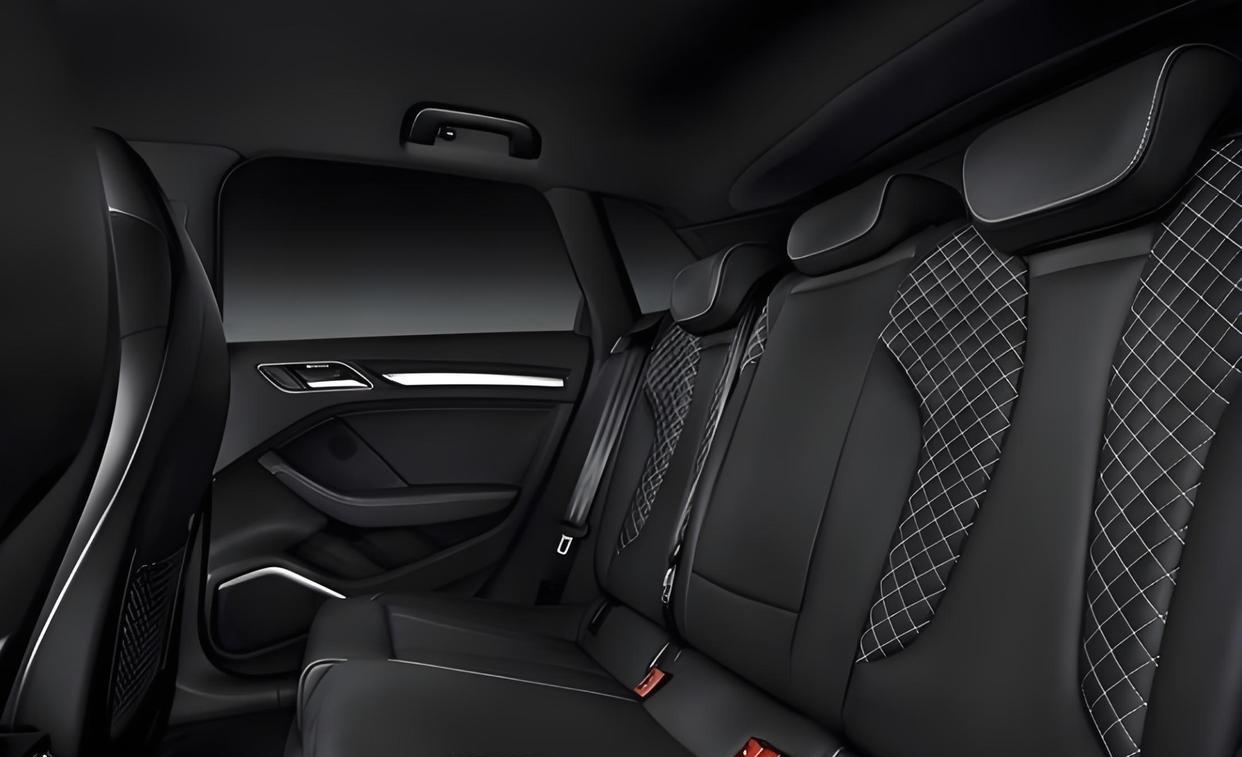 全新的奥迪S3依旧采用了更加符合大家审美的三厢结构,四门五座的设计不仅看上去更加舒展,也拥有更强的实用性。弧线形的车顶将车身高度压得很低,车窗四周加入了黑色的装饰条,并与全黑色侧窗玻璃和黑色加宽的B柱巧妙融为一体,银色外壳的倒车镜外壳再也压盖不住它性能车的身份,内凹的车门型面让整车变得更加灵动,双色18英寸锻造轮毂搭配着红色制动卡钳和宽胎,再配上黑色碳纤维侧裙设计,将性能车的气质展现的淋漓尽致。车身尺寸方面,全新奥迪S3长宽高分别为4504*1816*1415mm,轴距2630mm,车内配备了5座布局,前后排座椅在坐垫和靠背都加入了菱形防滑纹路,肩部位置还有“S”浮雕图案。行李箱容积也有390L,油箱容积55L,实用性也还不错。