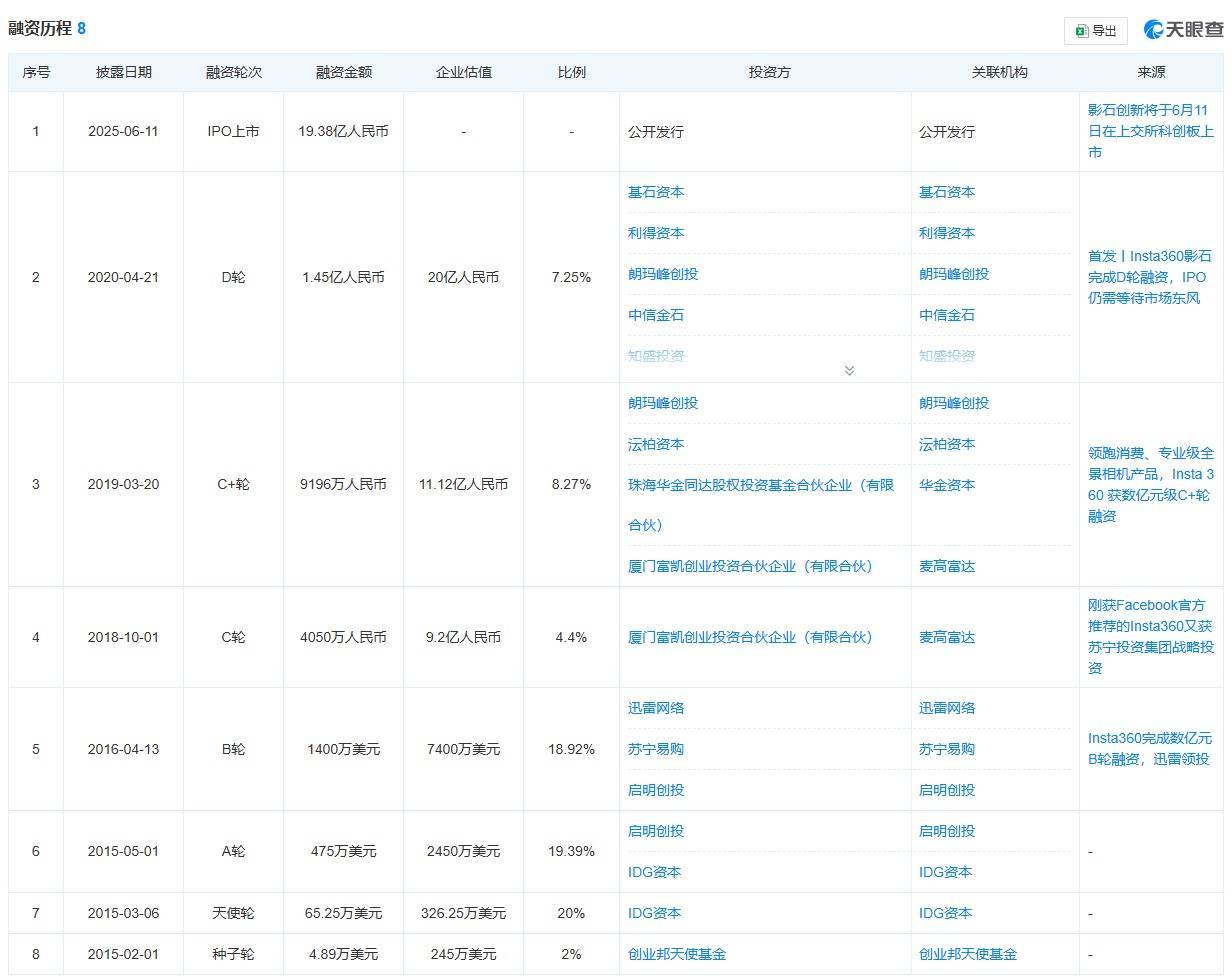 迅雷投资获利或超50亿元在完成IPO之前,影石创新于2015年至2020年完成了七轮融资,其中迅雷于2016年领投了影石创新的B轮融资。彼时,影石创新创始人兼CEO刘靖康在接受媒体采访时表示,“本轮融资后公司估值目前不方便对外透露。”