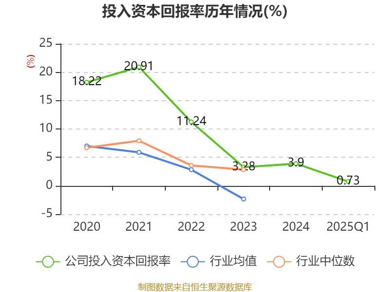 盈利能力方面, 2025年一季度公司加权平均净资产收益率为0.8%,同比下降0.17个百分点。公司2025年第一季度投入资本回报率为0.73%,较上年同期下降0.04个百分点。