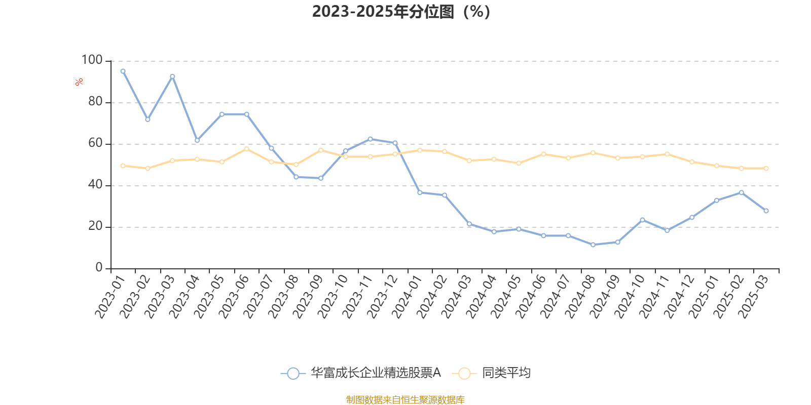 通过所选区间该基金净值增长率分位图,可以观察该基金与同类基金业绩比较情况。图为坐标原点到区间内某时点的净值增长率在同类基金中的分位数。