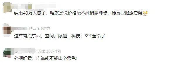 参考现款享界 S9 售价区间为 30.98-44.98 万元,外界预测享界 S9T 的售价大概在 40 万元。