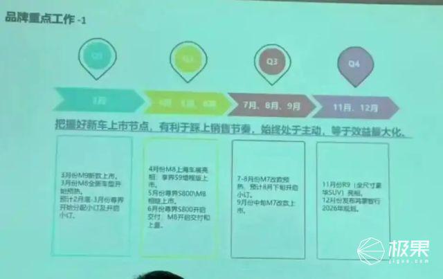 接下来还有智界 R9,根据曝光的 2025 年鸿蒙智行内部车型规划图来看,R9 车型定位在全尺寸豪华 SUV,将在 11 月份亮相。