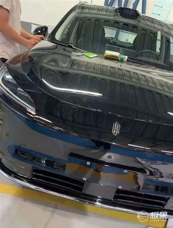 网络上曝光了该车的首张实拍图,车型采用了纯黑色车漆,全新盾牌样式的 Logo 已经装上了车,可以避免智界和享界当初无车标的尴尬。