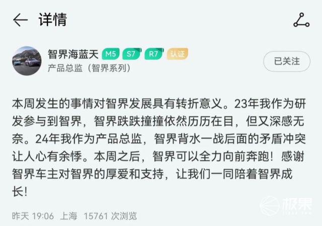 而且智界系列产品总监 @已经暗示:智界品牌的产品定调和品牌规划已经确定,后续可能会带来更大动作。