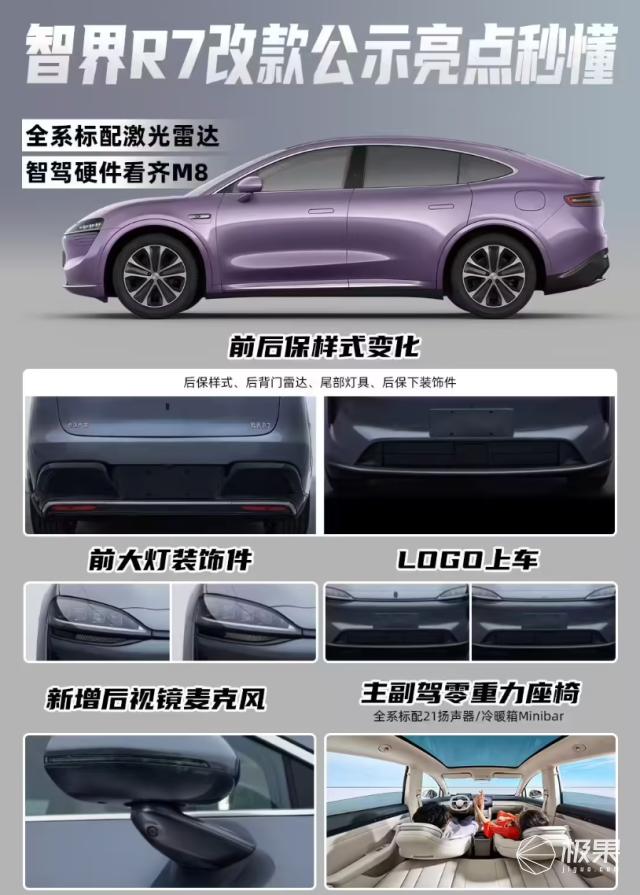 有消息说,新款 R7 的智驾硬件会看齐问界 M8,不仅支持华为 ADS 4 乾崑智驾,主副驾还有零重力座椅。甚至能支持在车外语音交互,升级非常多了。